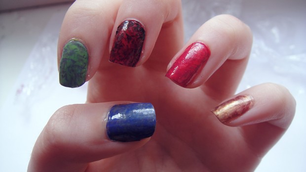 Ihr könnt euch noch erinnern? Im Mai schrieb ich über eine Nageldesign-Technik, die mit Hilfe von Frischhaltefolie einen Marmor-Effekt auf die Nägel zaubert. Eine Anleitung und meinen ersten Versuch könnt ihr euch hier ansehen: Saran Wrap Nails